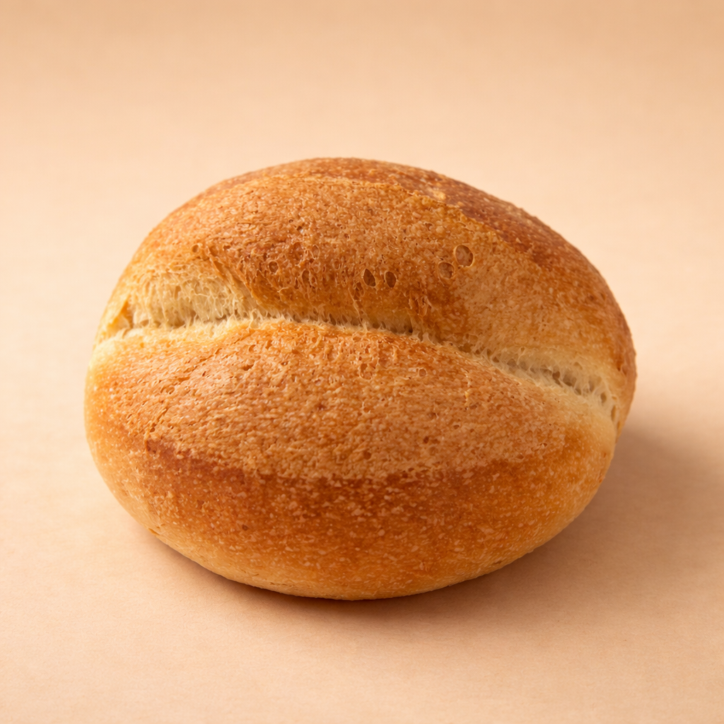Knuspriges klassisches Brötchen mit goldbrauner Kruste und lockerer Krume – perfekt für süßen oder herzhaften Frühstücksbelag.